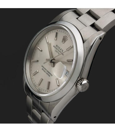 Montre bracelet en acier, cadran argenté rayonnant avec index appliqués, affichage de la date par guichet à 3 heures. Mouvement automatique. Bracelet acier, maillons oyster avec boucle déployante réglable en acier. Signée et numérotée 15200.