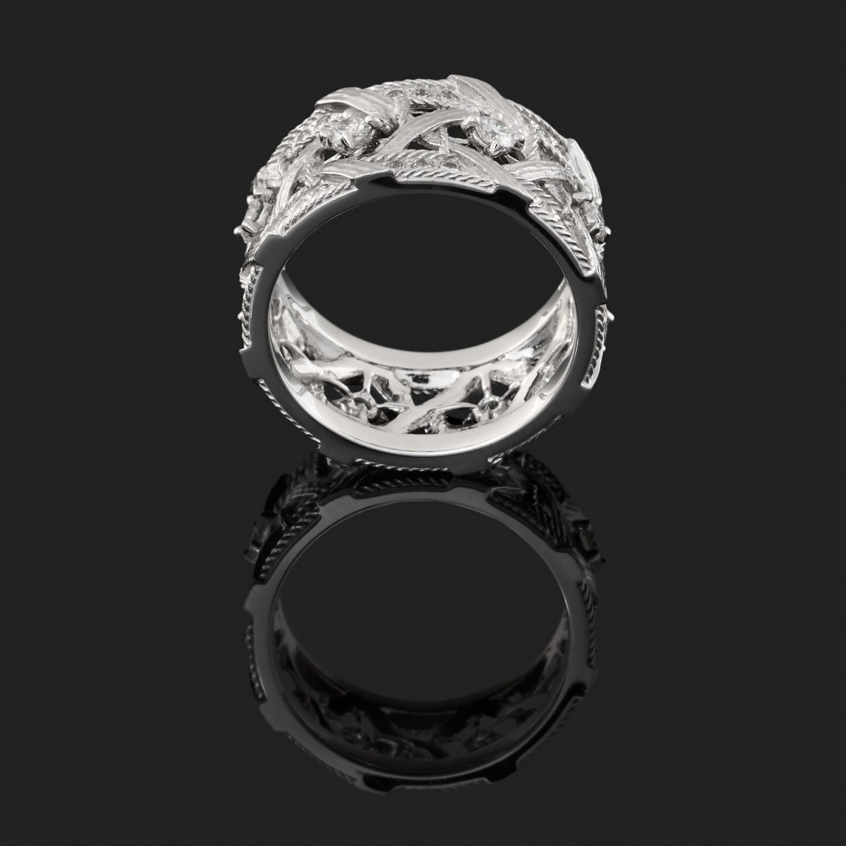 Bague en or blanc stylisant une paille tressée rehaussée de diamants. Signée et numérotée 029791.