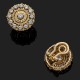 Boucles d’oreilles 2 tons d’or ciselé, stylisant un motif géométrique ajouré ponctué de diamants. Signées et numérotées.