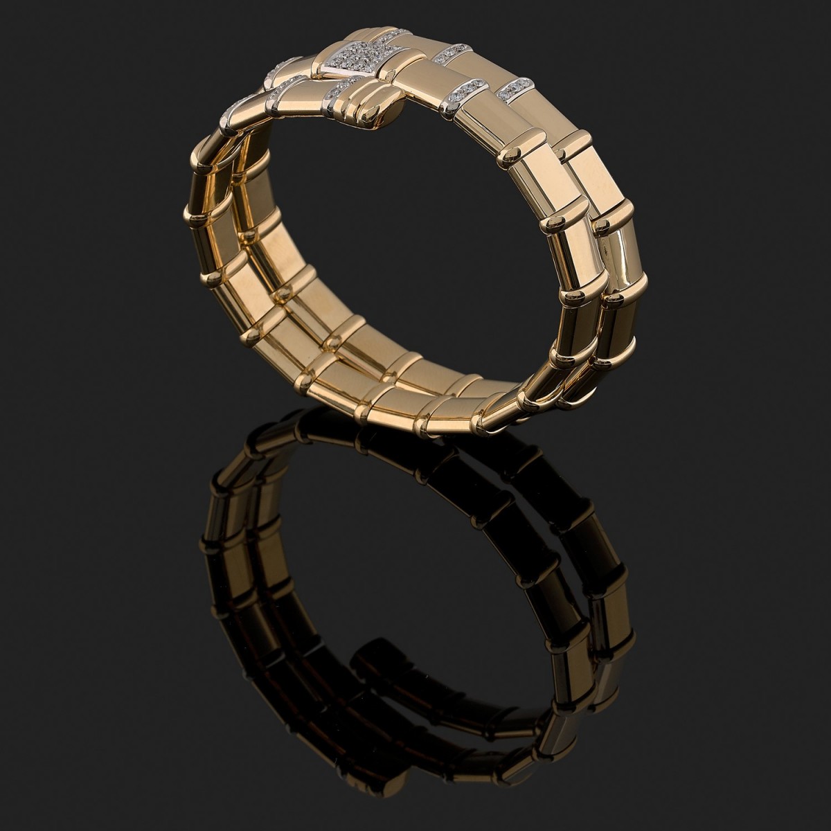 Bracelet souple en or jaune, style serpent, ponctué de diamants.
