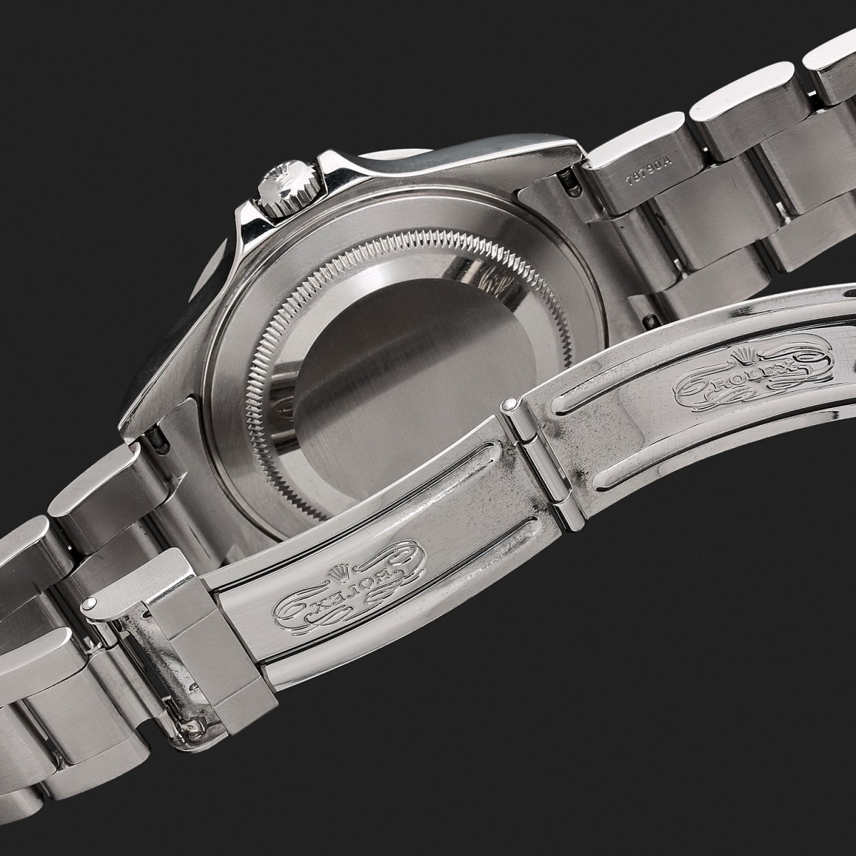 Montre bracelet d'homme en acier, cadran noir avec index luminescents, loupe cyclope avec affichage de la date par guichet à 3 heures, aiguille luminescente pour le second fuseau horaire, lunette graduée. Mouvement automatique. Bracelet acier, maillons oyster avec boucle déployante réglable en acier. Signée et numérotée 16570T.