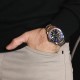 Montre bracelet d'homme en acier, cadran noir avec index luminescents, loupe cyclope avec affichage de la date par guichet à 3 heures, aiguille flèche pour le second fuseau horaire, lunette tournante graduée patinée rouge et bleu. Mouvement automatique. Bracelet oyster avec boucle déployante réglable en acier. Signée et numérotée réf. 16710.
