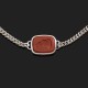 Sautoir en argent, maille gourmette, orné de 3 motifs en pierre ornementale dont une gravée en intaille figurant une tête de cheval. Signé et numéroté.