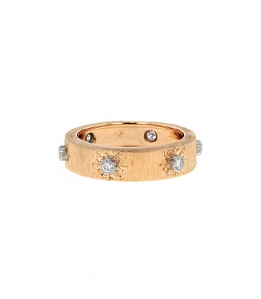 Bague en or rose ciselé, ponctuée de diamants ronds en serti clos or blanc. Signée et numérotée.