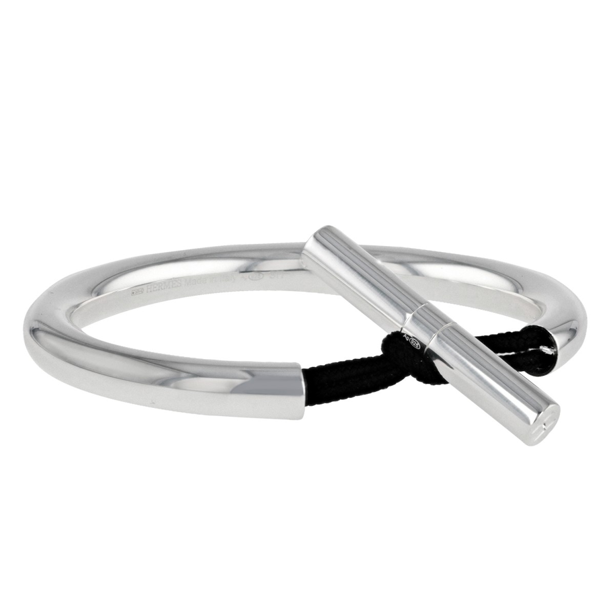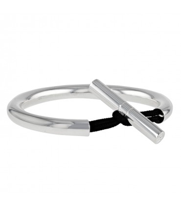 Bracelet jonc en argent et cordon noir en soie, agrémenté d’un bâtonnet. Signé.