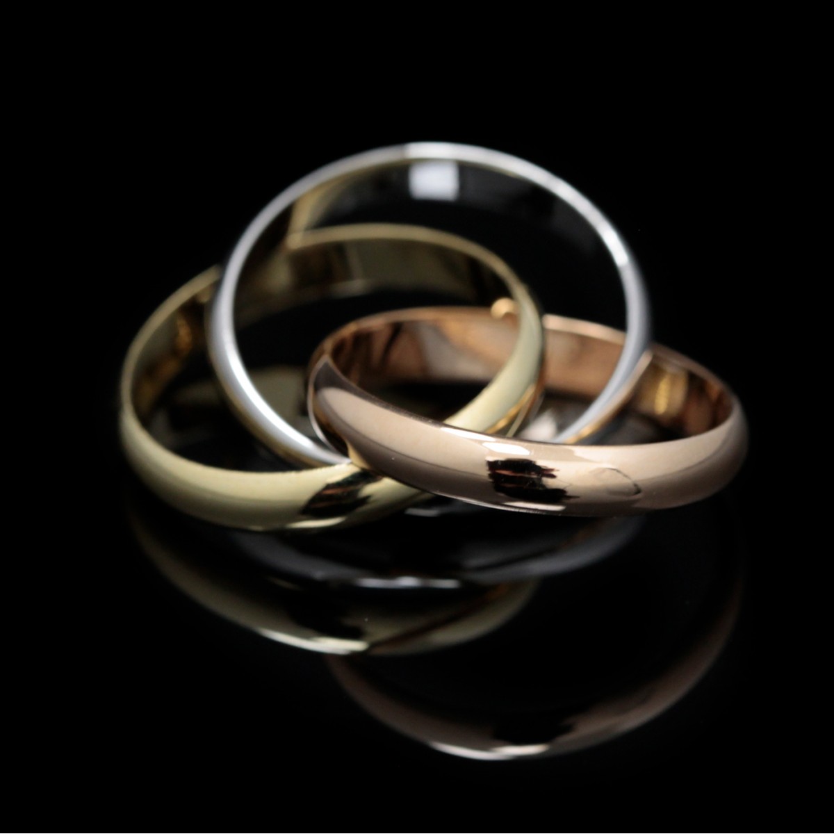 Bague 3 tons d’or petit modèle, composée de 3 anneaux entrelacés. Signée.
