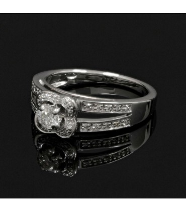Bague en or blanc, ornée d'un diamant de 0,20 ct env. entouré d'un motif polylobé diamanté.