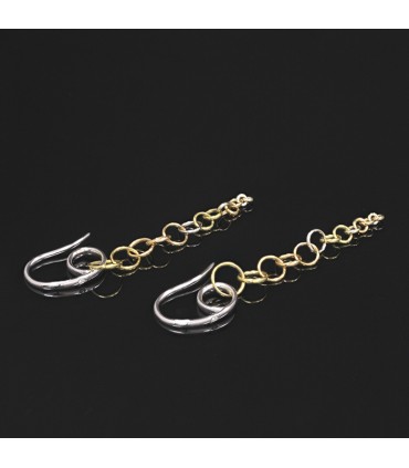 Boucles d’oreilles 2 tons d’or, ponctuées d’un diamant, composé d’une chute d’anneaux mobiles. Signées.