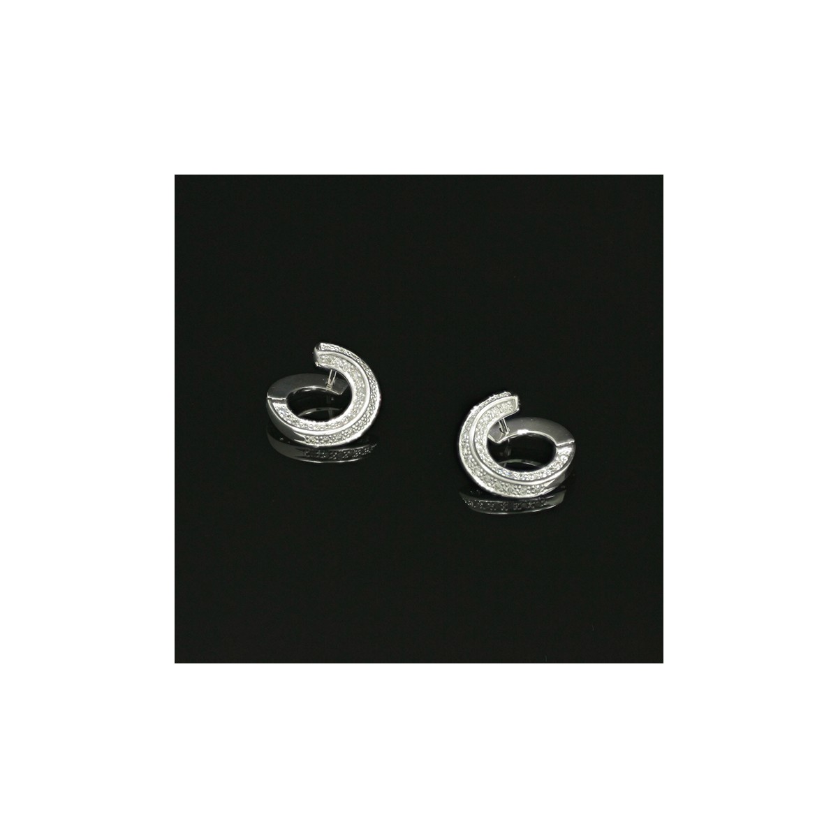 Boucles d’oreilles en or blanc, stylisant un motif en spirale orné de diamants.