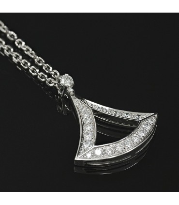 Collier en or blanc, maille forçat, centré d’un motif géométrique ajouré orné de diamants. Signé.