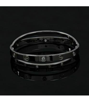 Bracelet rigide nouvelle génération en or blanc, composé de 2 anneaux entrelacés à décor de vis et ponctués de diamants. Signé et numéroté. Accompagné de son tournevis.