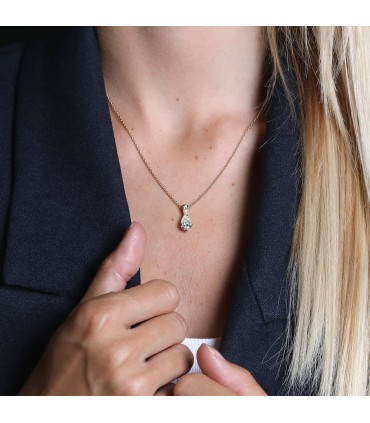 Collier en or jaune, maille forçat, centré d’un pendentif orné d’un diamant taillé en poire d’environ 1,46 cts, la bélière diamantée.
