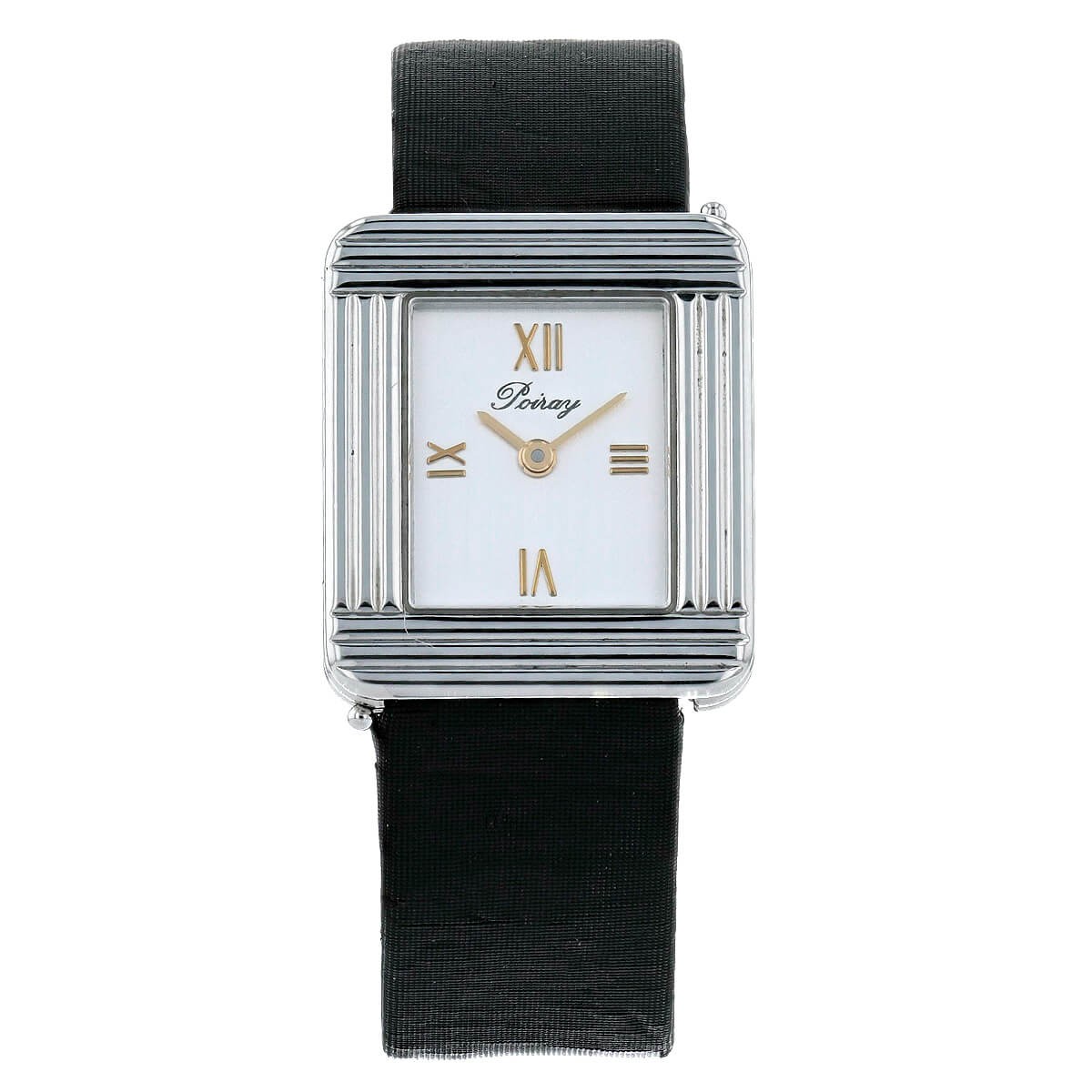 Montre bracelet de femme en acier, cadran argenté avec chiffres romains dorés appliqués, lunette godronnée. Mouvement quartz. Bracelet interchangeable en autruche gris avec boucle ardillon en acier. Signée et numérotée. Accompagnée de 7 bracelets supplémentaires.