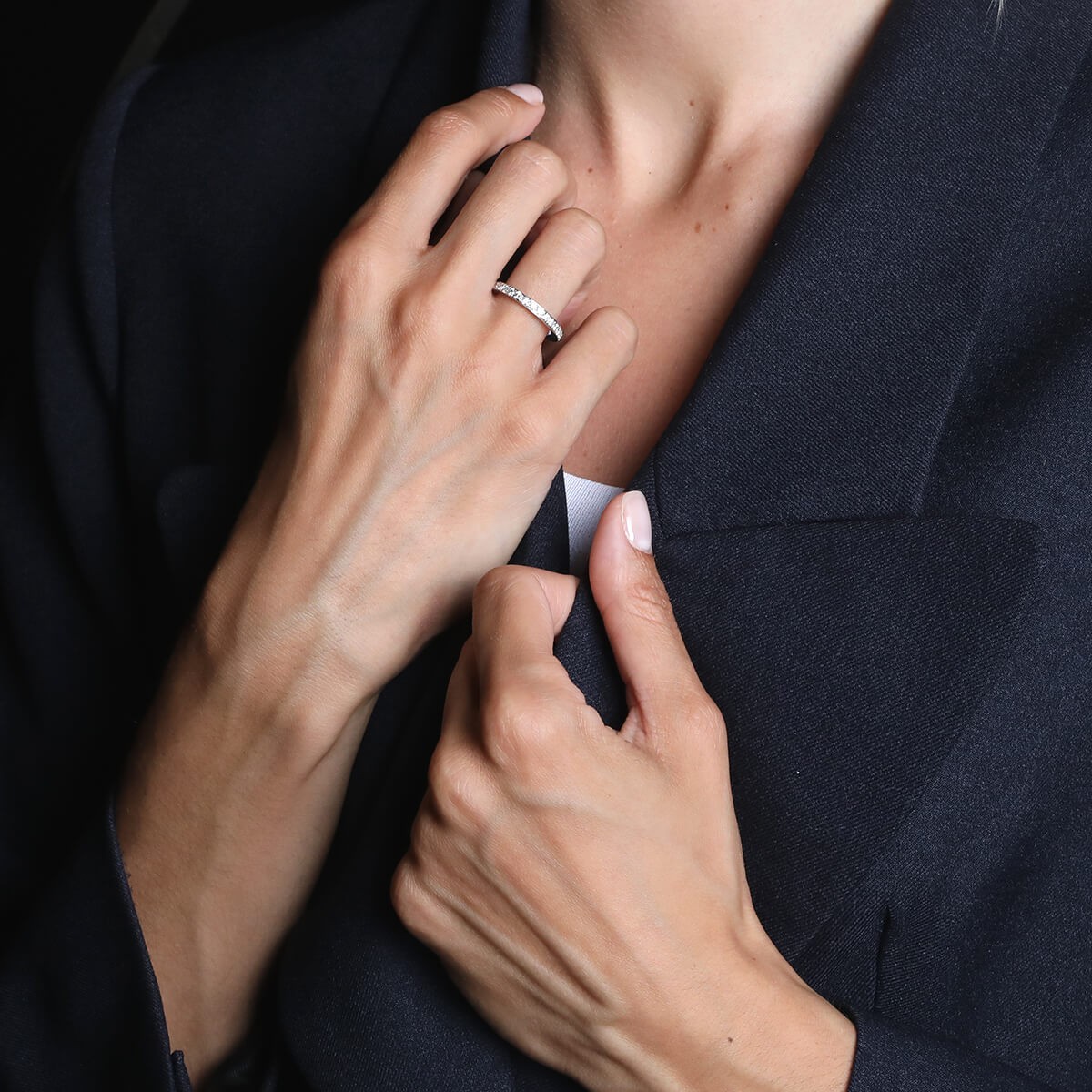Alliance en or blanc, ornée d’une ligne de diamants.