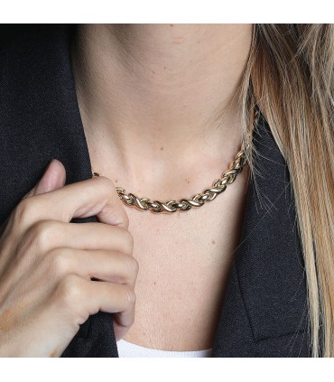Collier en or jaune, maille articulée à décor tressé, agrémenté d’un fermoir invisible à cliquet avec sécurité.
