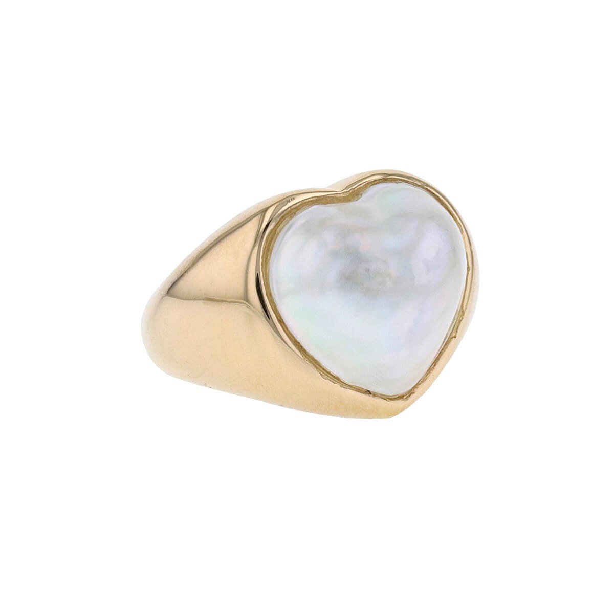Bague en or jaune, ornée d’une perle mabé en forme de coeur.