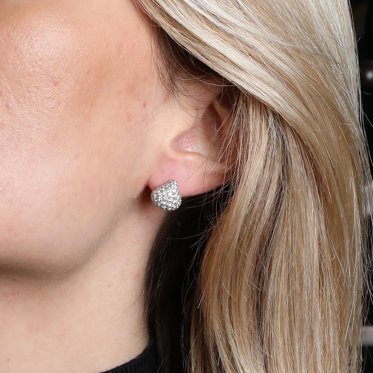 Boucles d’oreilles en or blanc, stylisant un motif géométrique en goutte rehaussé d’un pavage de diamants. Signée et numérotée.