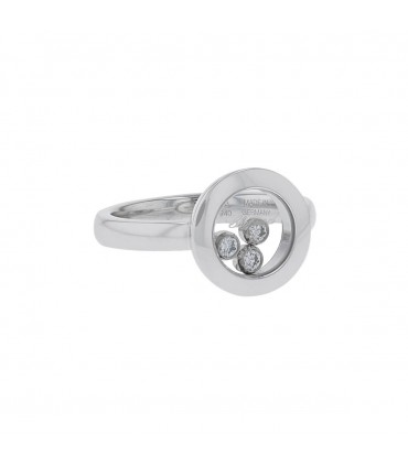 Bague en or blanc, stylisant un disque ajouré retenant 3 diamants mobiles en serti clos. Signée et numérotée.
