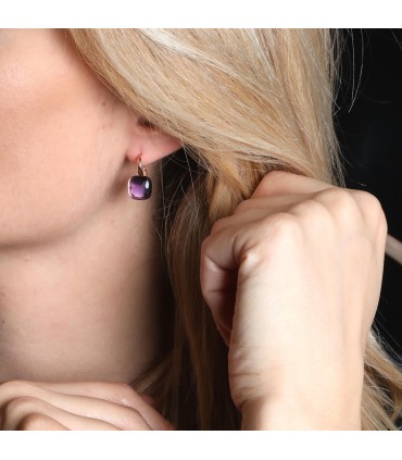 Boucles d'oreilles en or rose, ornées d’améthystes facettées. Signées et numérotées.