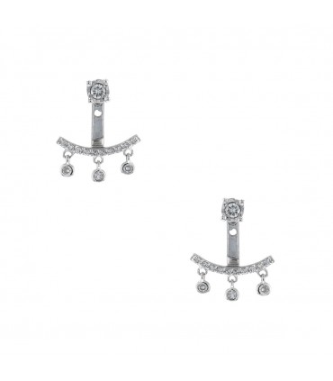 Boucles d’oreilles en or blanc, composées d’un petit clou accompagné d’un motif amovible l’ensemble orné de diamants.