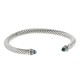 Bracelet rigide ouvert en argent, stylisant une torsade les embouts ponctués de topazes bleues facettées rehaussées de diamants. Signé.