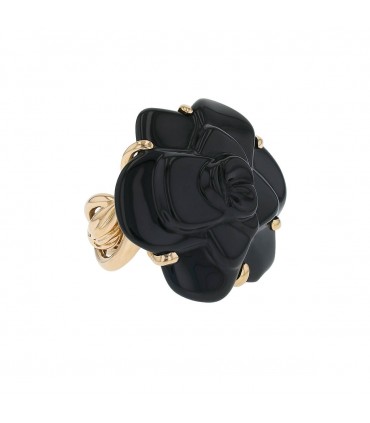 Bague grand modèle en or jaune, ornée d’un onyx sculptée à décor de camélia. Signée et numérotée.