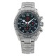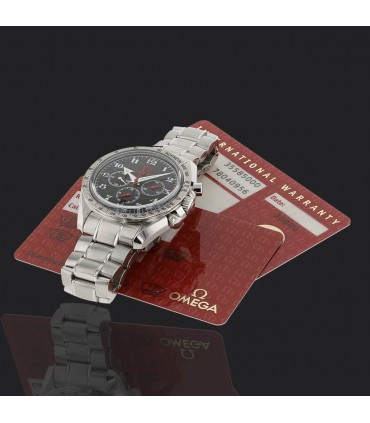 Montre chronographe en acier, cadran noir 3 compteurs avec chiffres arabes, chemin de fer pour les minutes, affichage de la date par guichet à 6 heures, lunette graduée d’un tachymètre jusqu’à 1000 units par heure. Mouvement automatique. Bracelet acier, maillons articulés avec boucle déployante réglable en acier. Signée et numérotée.