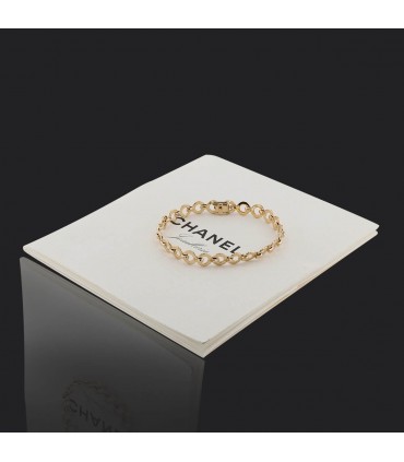 Bracelet en or jaune, maillons articulés stylisant des disques ajourés, agrémenté d’un fermoir invisible à cliquet avec sécurité. Signé et numéroté.