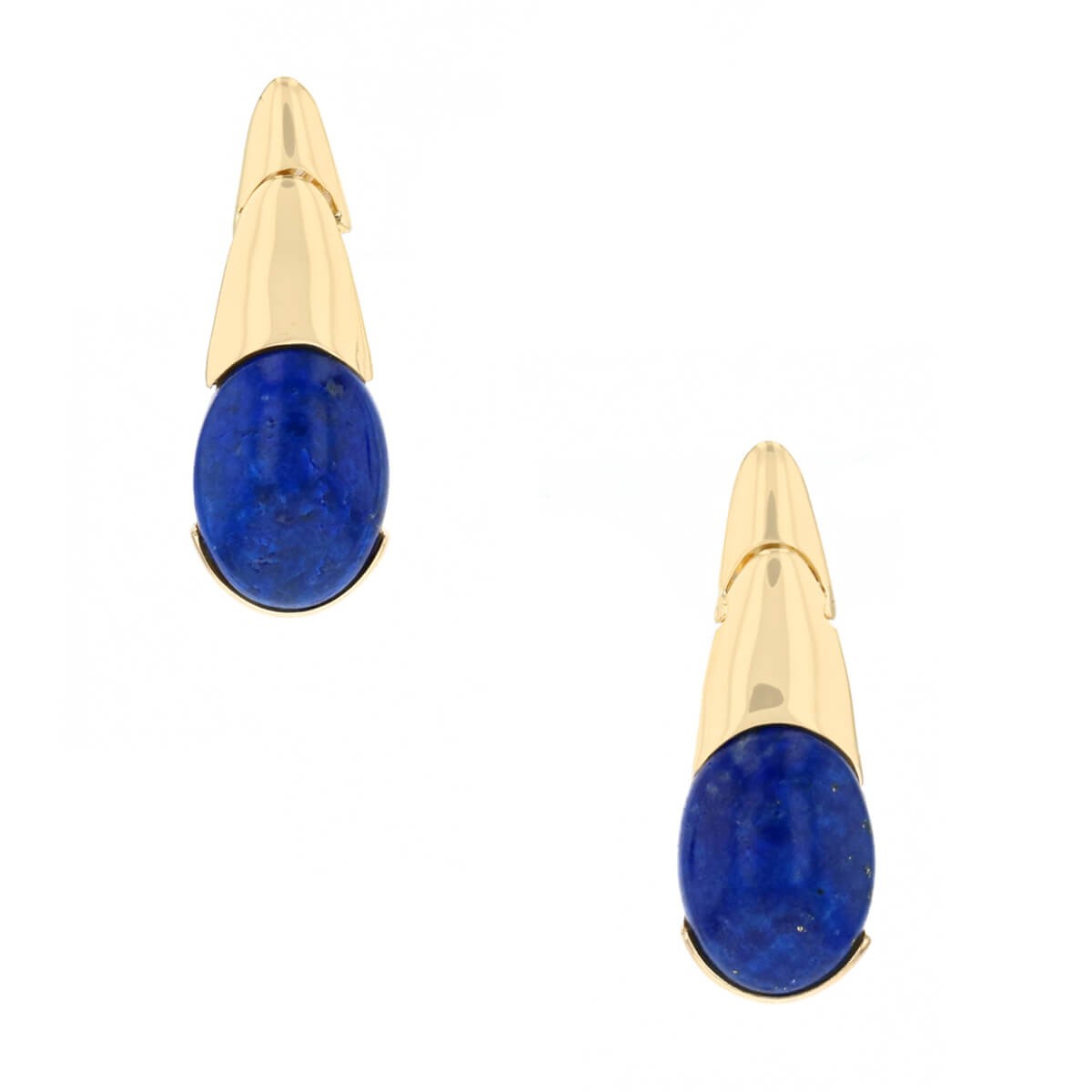 Boucles d’oreilles articulées en or jaune, ornées d’un cabochon de lapis lazuli.