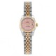 Montre bracelet de femme en or jaune et acier, cadran en pierre ornementale rose avec index diamants, chemin de fer pour les minutes, affichage de la date par guichet à 3 heures, lunette cannelée en or jaune. Mouvement automatique. Bracelet or jaune et acier, maillons jubilé avec boucle déployante réglable en acier. Signée et numérotée réf. 179173.