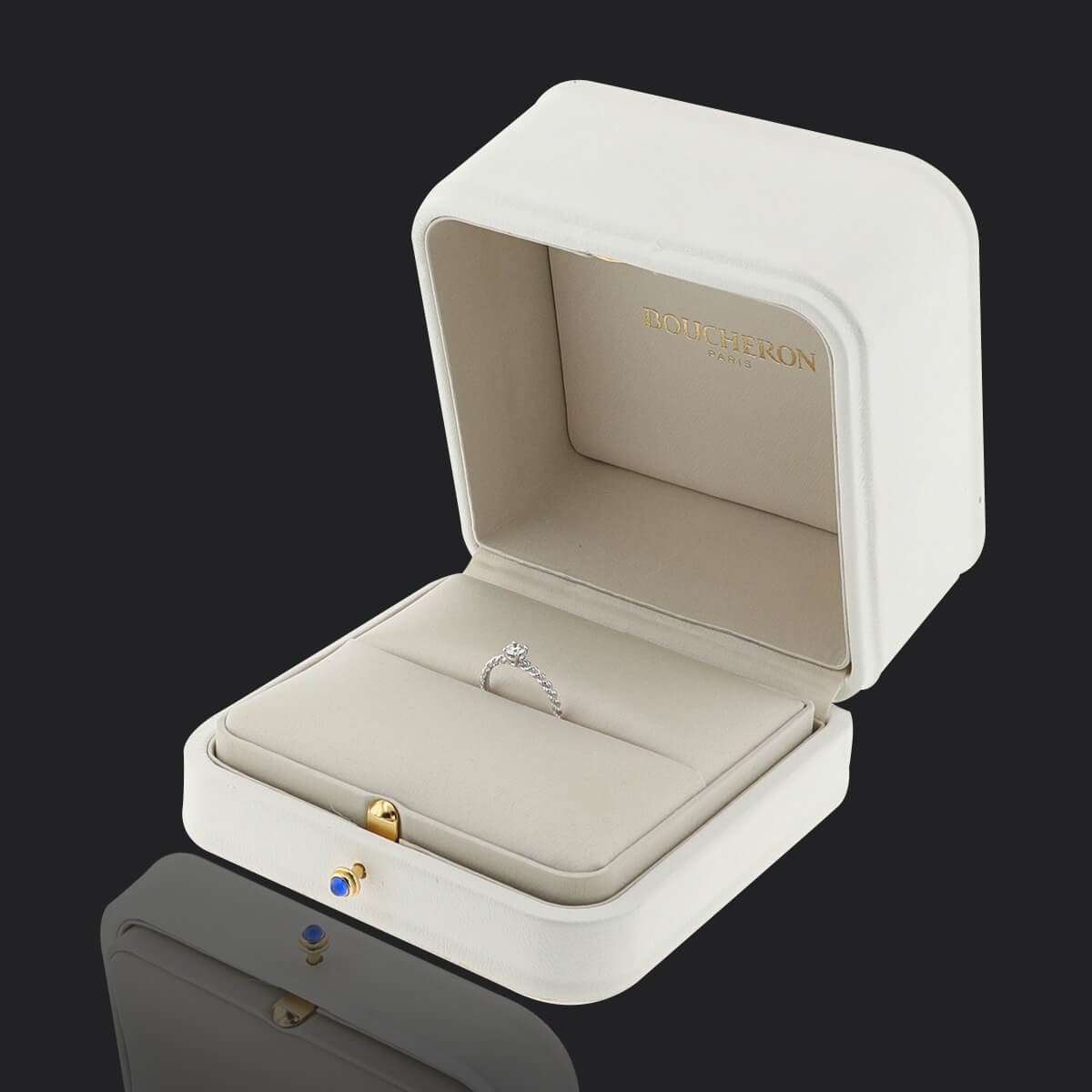 Bague en or blanc, ornée d’un diamant rond en serti griffe d’environ 0,20 ct, la monture torsadée. Signée et numérotée.