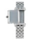 Montre bracelet de femme en acier, cadran bicolore argenté avec chiffres arabes peints, chemin de fer pour les minutes, boîtier réversible ornés de lignes de diamants. Mouvement quartz. Bracelet acier, maillons articulés avec boucle déployante en acier. Signée et numérotée.