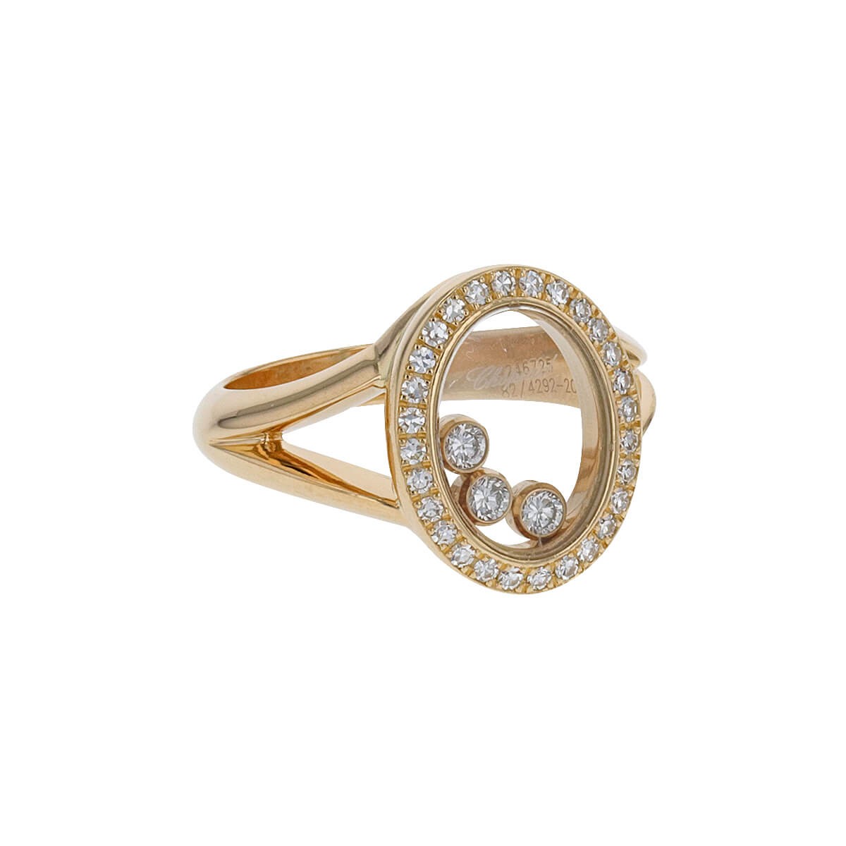 Bague en or jaune, stylisant un motif ovale diamanté retenant 3 diamants mobiles. Signée et numérotée. Légère rayure sur verre à 6 heures.