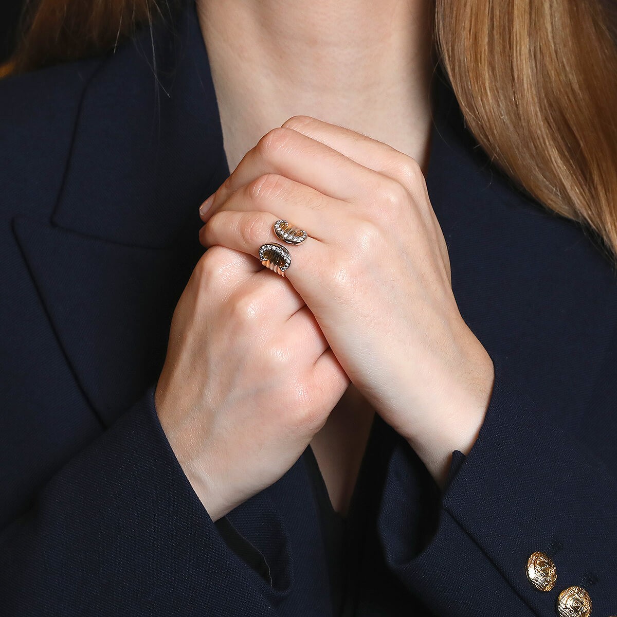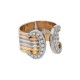 Bague ouverte 3 tons d'or, les embouts ornés du monogramme au double “C” de la maison Cartier rehaussé de diamants. Signée et numérotée.