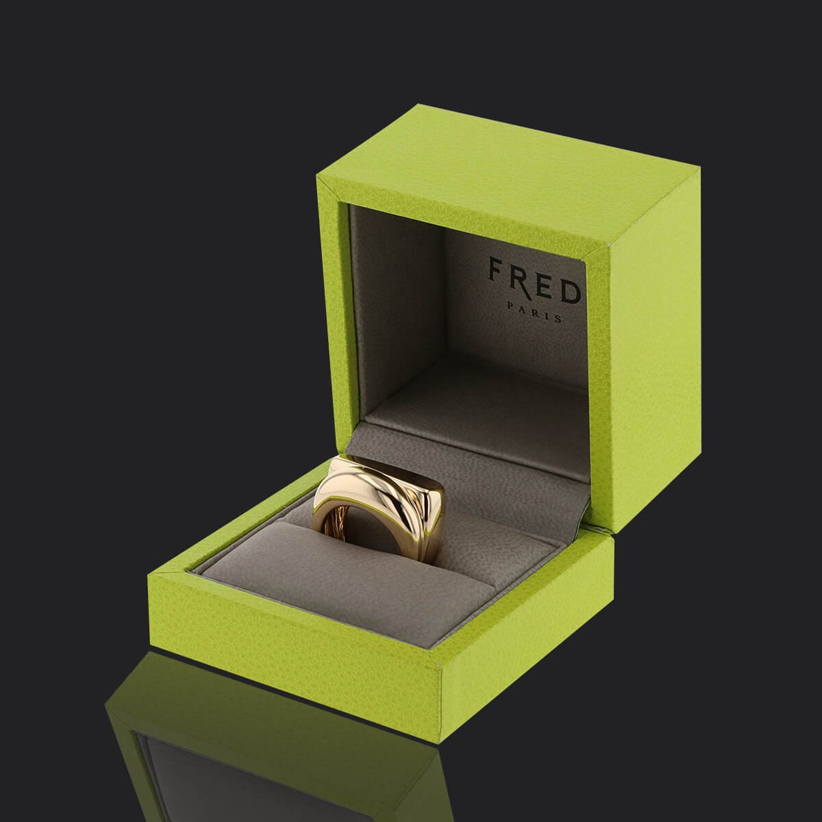 Bague en or jaune, composée de 2 joncs juxtaposés stylisés. Signée et numérotée.