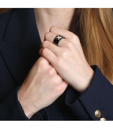 Bague en titane noir, ornée d’un motif en or blanc stylisant une étoile rehaussée de diamants. Signée et numérotée.