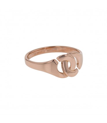 Bague en or rose stylisant deux menottes entrelacées. Signée.
