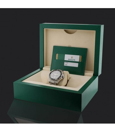 Montre bracelet d'homme en acier, cadran noir avec index appliqués luminescents, lunette tournante unidirectionnelle graduée en céramique noire. Mouvement automatique. Bracelet acier, maillons oyster avec boucle déployante réglable en acier. Signée et numérotée réf. 114060.