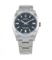 Montre bracelet en acier, cadran noir rayonnant avec index appliqués, chemin de fer pour les minutes. Mouvement automatique. Bracelet acier, maillons oyster avec boucle déployante réglable en acier. Signée et numérotée réf. 126000.