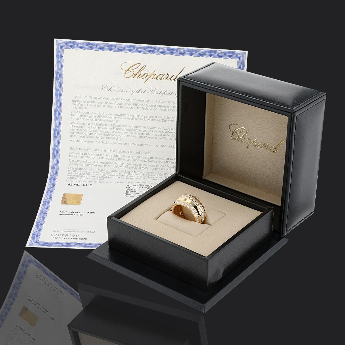 Bague en or jaune, ornée de 3 lignes de diamants. Signée et numérotée.