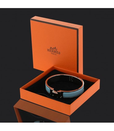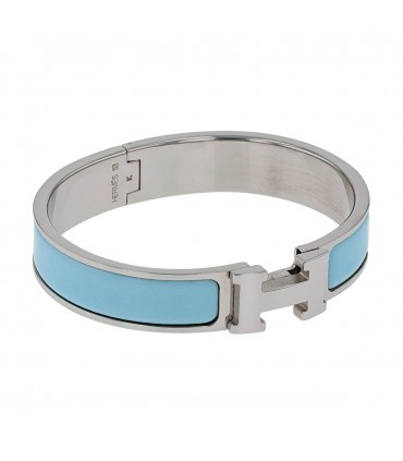 Bracelet en acier finition palladié et émail bleu ciel. Signé.