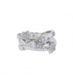Bague souple ouvrante en or jaune brossé, stylisant une boucle entrelaçant un motif boule poli. Signée.