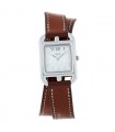 Montre bracelet de femme taille XL en acier, cadran noir, lunette octogonale. Mouvement quartz. Bracelet cuir noir et acier, maillons articulés avec fermoir à cliquet. Signée et numérotée.