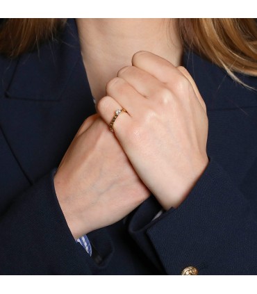 Bague en or jaune, stylisant un motif clou de Paris centré d’un diamant rond d’environ 0,20 ct en serti griffe. Signée et numérotée.