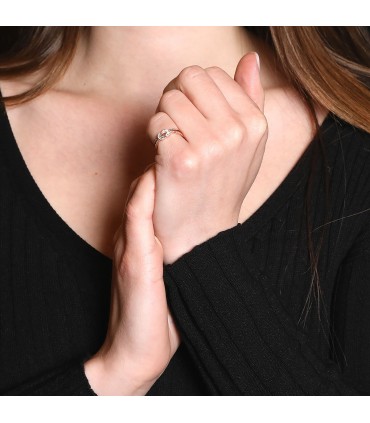 Bague petit modèle en or rose, stylisant un motif noeud d’hercule rehaussé d’un pavage de diamants. Signée et numérotée.