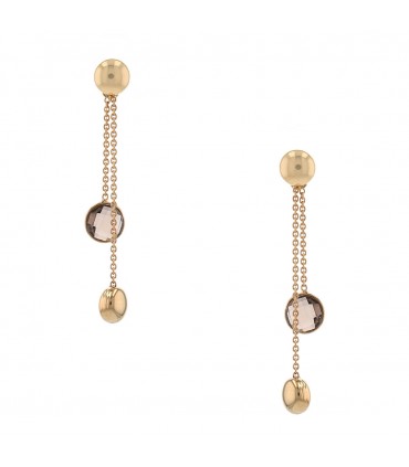 Boucles d’oreilles en or jaune, stylisant un motif rond retenant 2 chaînettes maille forçat amovible se terminant par une pastille en or et un quartz fumé en serti clos.