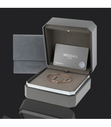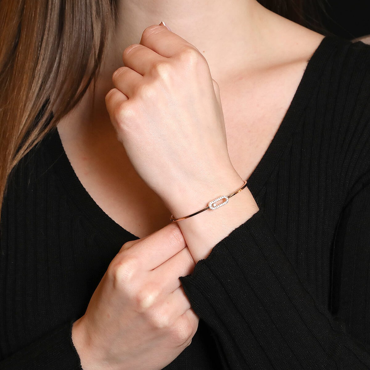 Bracelet rigide ouvrant en or rose, centré d’un motif géométrique orné de diamants retenant un diamant mobile. Signé et numéroté.
