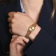 Montre bracelet de femme en or jaune, cadran doré rayonnant, chemin de fer pour les minutes, lunette stylisée. Mouvement quartz. Bracelet en or jaune, maillons articulés à décor ajouré perlé avec fermoir à cliquet et chaînette de sécurité. Signée et numérotée.