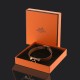 Bracelet en cuir marron, orné de motifs “clous Médor” et d'un anneau en métal plaqué or, attache à l'arrière. Signé.