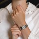 Montre bracelet de femme en acier, cadran argenté stylisé avec chiffres arabes, lunette à décor de “H” rehaussée de diamants. Mouvement quartz. Bracelet acier, maillons articulés partiellement ponctués de diamants avec boucle déployante en acier. Signée et numérotée.